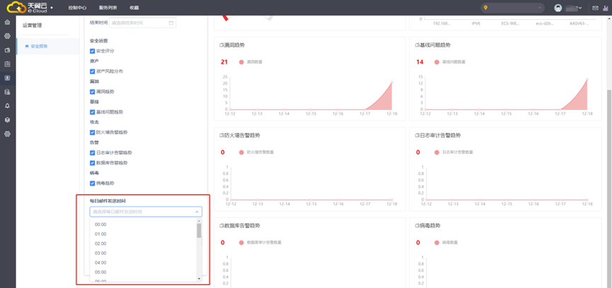 - 存在自定义时间段查询,根据开始时间和结束时间进行查询并对安全运营模块进行实时监控和检查,该功能模块支持邮件定期发送及指定特定接收人。