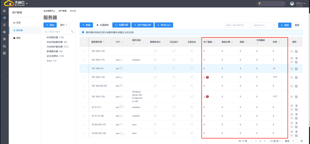 汇总展示服务器主机威胁、漏洞安全情况。