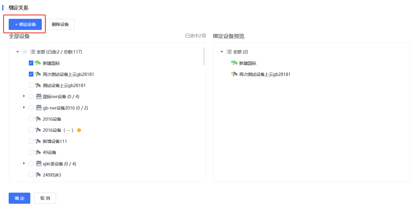 完成订阅创建后,在订阅列表选中单个订阅并点击【绑定设备】,可勾选多个需订阅的设备后点击【确定】即立即生效。