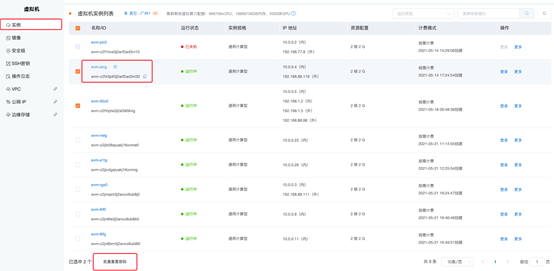 3、在【虚拟机实例列表】可以查看自己创建的实例信息