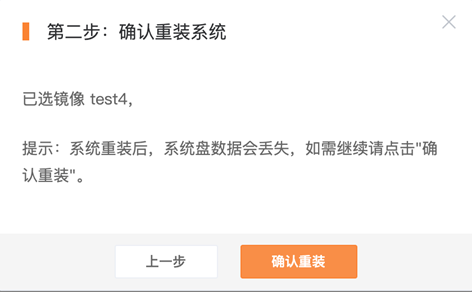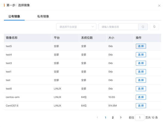 9、【重装】,对虚拟机的镜像进行重装,操作分两步,第一步:选择公有/私有镜像,可通过平台类型和镜像名称进行搜索,点击【选择】,第二步:确认重装系统,点击【确认重装】便可重装虚拟机实例的镜像。