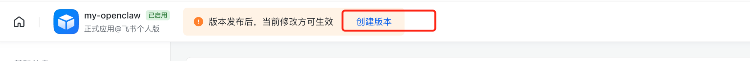 点击应用名称旁边创建版本。