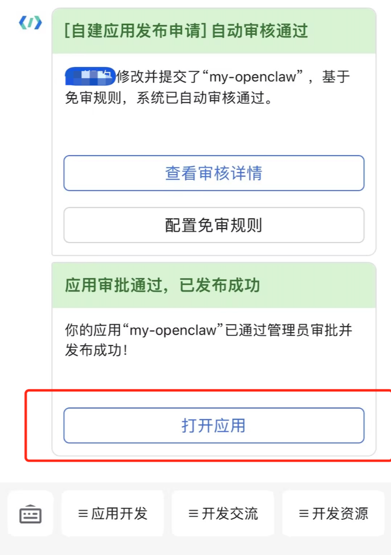 1、打开飞书APP,进去开发者小助手,找到机器人,点击打开应用开启对话。