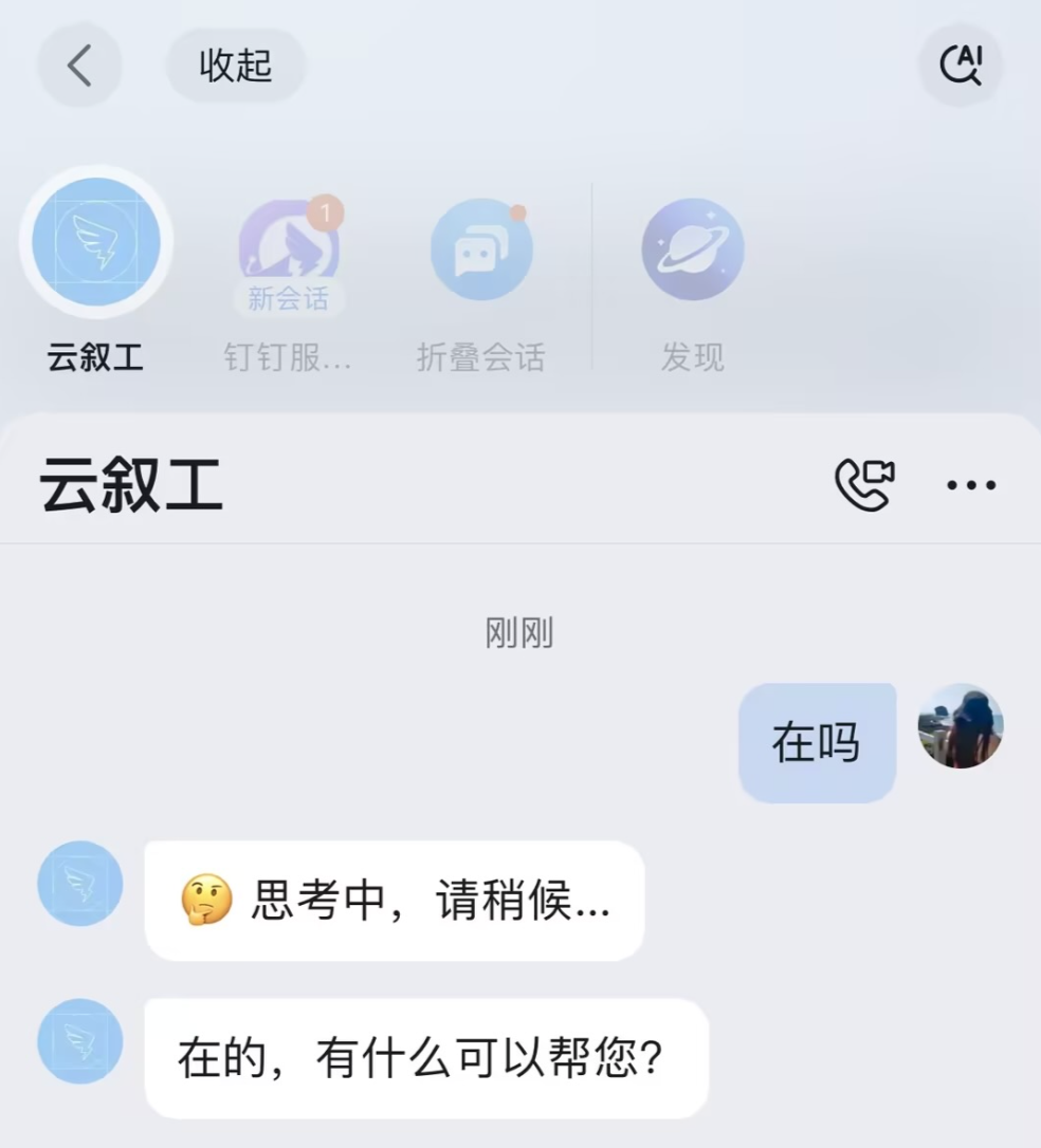 1、进入钉钉,搜索机器人名称,找到刚刚创建的机器人。