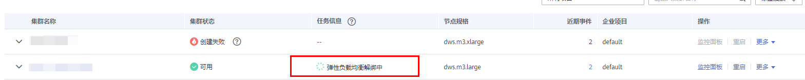 - 解绑ELB时,DWS侧会清除ELB中集群相关信息,但并不会删除用户ELB,请注意ELB本身的计费影响,防止不必要的成本支出。
