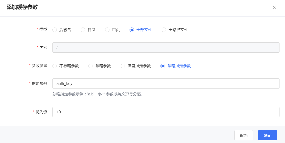 缓存配置:忽略鉴权参数缓存,详情请见:缓存key设置。