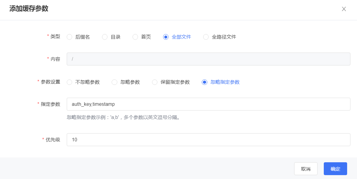 缓存配置:忽略鉴权参数缓存,详情请见:缓存key设置。