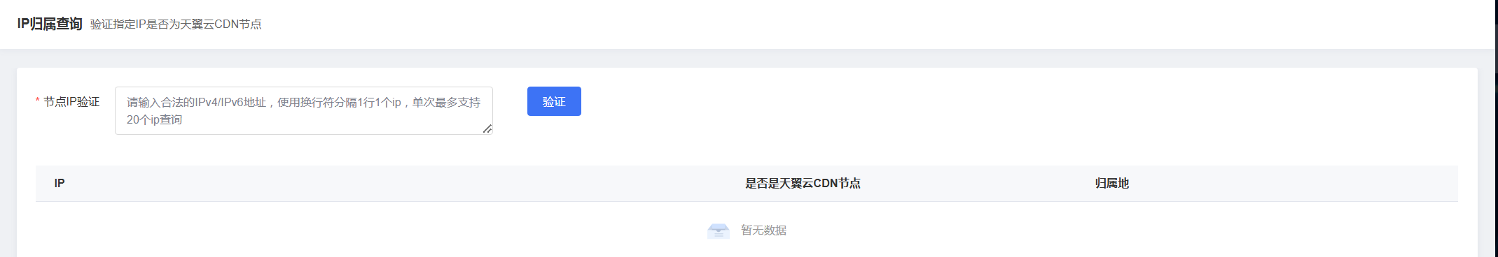 本文简述如何通过诊断工具查询指定IP是否为天翼云CDN节点IP以及对应归属地。