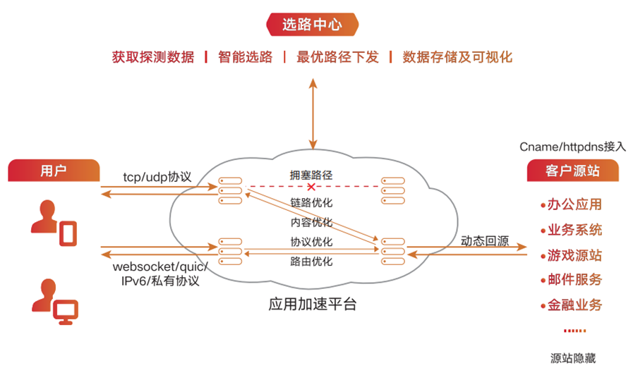应用加速(IP Application Accelerator,IPA)依托天翼云CDN平台的优质节点及线路,通过智能调度、传输优化等核心技术,为基于TCP/UDP协议的各类应用提供性能优化服务,包括企业办公系统(如OA、邮箱等)、业务系统(如ERP、DMS等)、金融及游戏行业的各种动态指令及接口等,可有效解决公网链路抖动、拥塞等问题,大幅提升办公系统、业务系统、生产系统等各类应用的访问速度与稳定性。