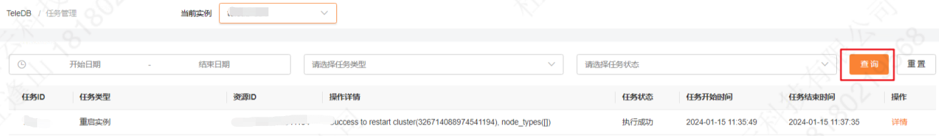 在当前实例下拉框选择您需要查找的实例,输入筛选条件,单击查询。