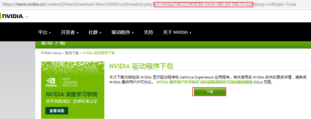 例如,nvidia396.37版本驱动链接:https://us.download.nvidia.com/tesla/396.37/NVIDIA-Linux-x86_64-396.37.run。
