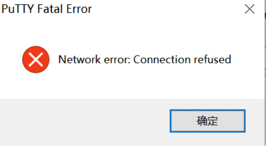 - 打开远程连接工具putty,输入此弹性云主机实例的弹性公网IP,先默认使用22端口登录,可以看到连接被拒绝,网络已中断,说明目前22端口已经无法进行远程登录。