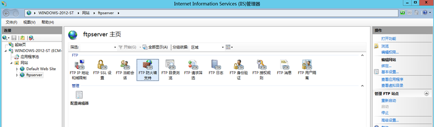 展开“ 网站” ,会显示建立的FTP服务,双击右侧的FTP防火墙支持。图2 FTP防火墙支持