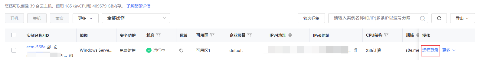 如果查询到Remote Desktop Services服务没有正在运行,请先重启该服务,然后再尝试连接云主机。