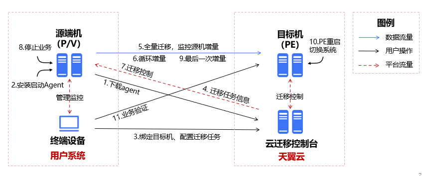 - 迁移任务信息: 一旦迁移任务配置完成,迁移Agent即可获取并执行来自云迁移服务的迁移指令,开始迁移任务。