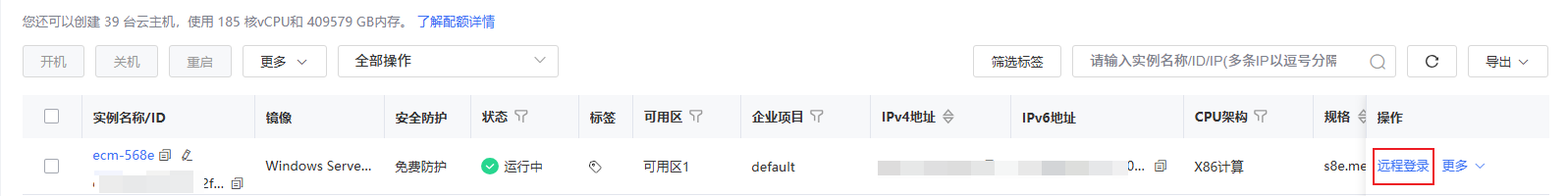 使用管理控制台VNC方式登录弹性云主机。