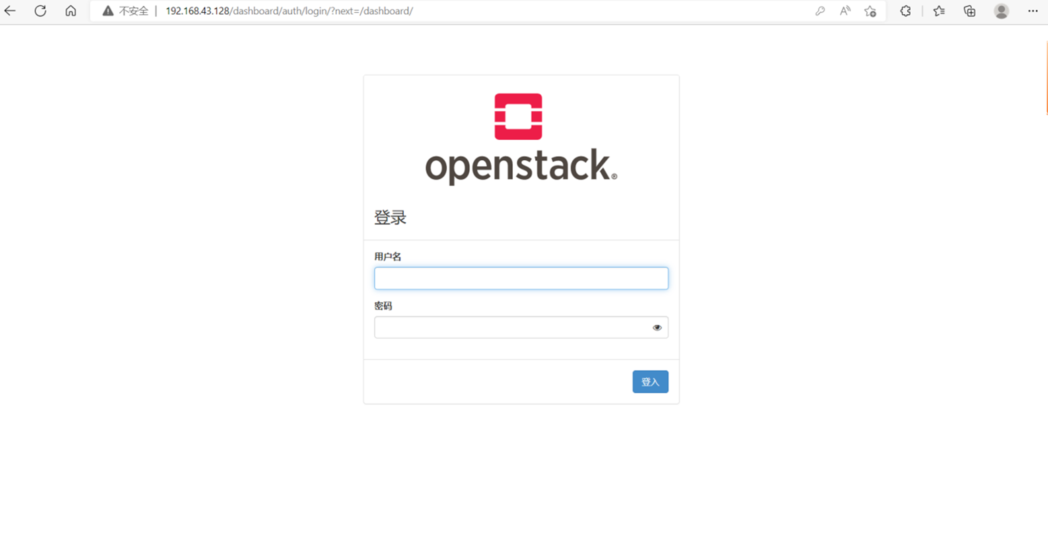 packstack --answer-file=/root/openstack.ini打开浏览器,输入http://IP,本示例为http://192.168.43.128/,登录OpenStack管理页面。