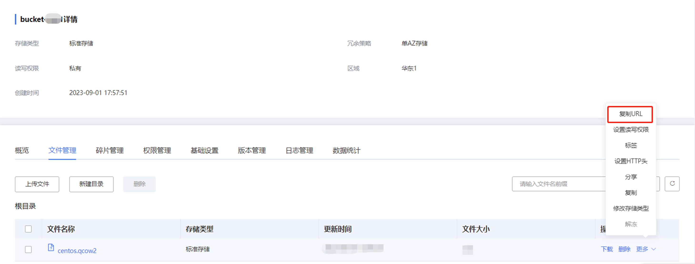 其中,地址可以在对象存储控制台中的“更多”>“复制URL”选项中复制获得。