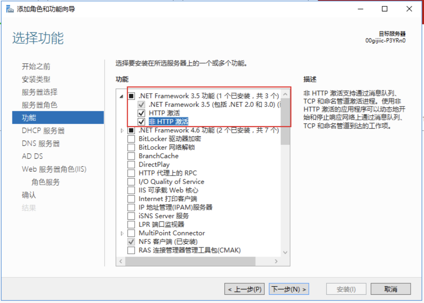在“功能”导航栏中,选中“.NET Framework 3.5 功能”。
