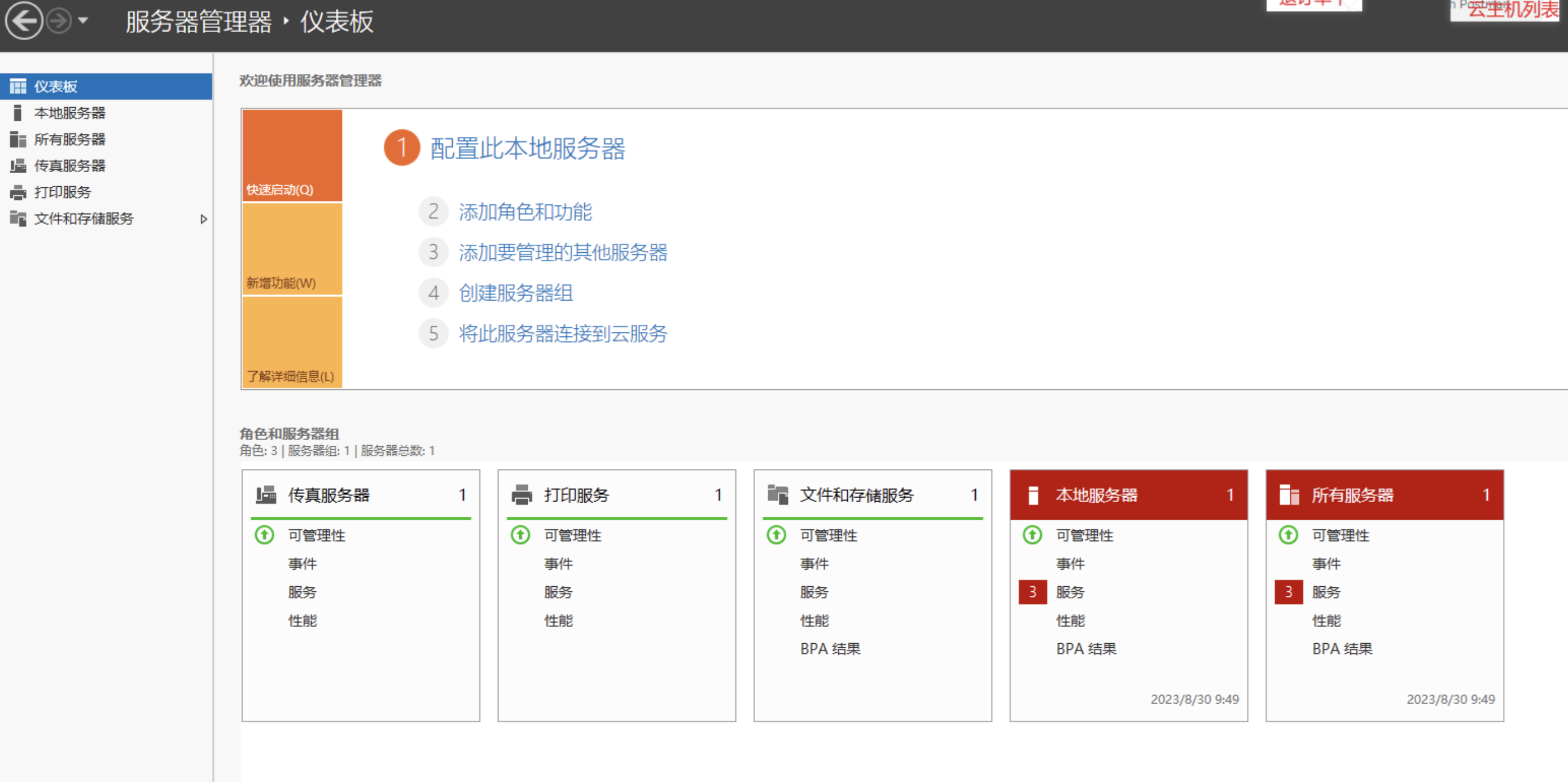 进入“服务器管理器”的页面点击“仪表板”。