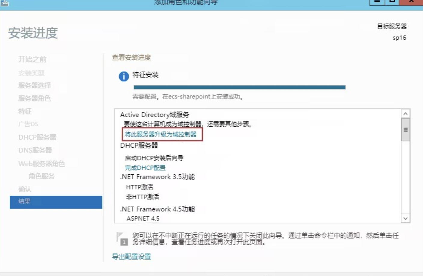安装完成后,单击“将此服务器升级为域控制器”,开始配置AD服务。