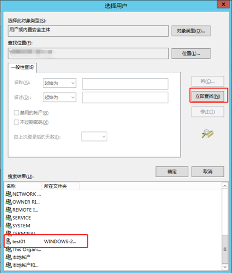 在新的选择用户界面,单击“立即查找”,在下方搜索结果中选中需要远程登录的用户,并单击“确定”,完成添加,即可远程登录。