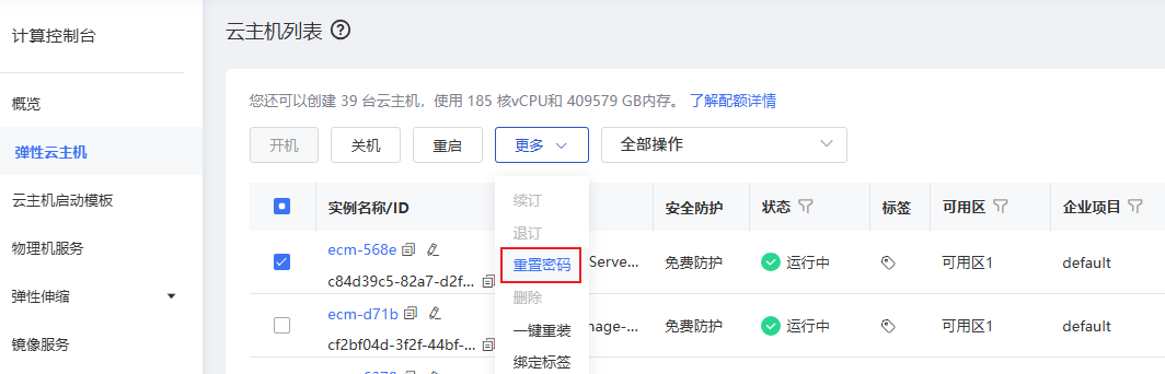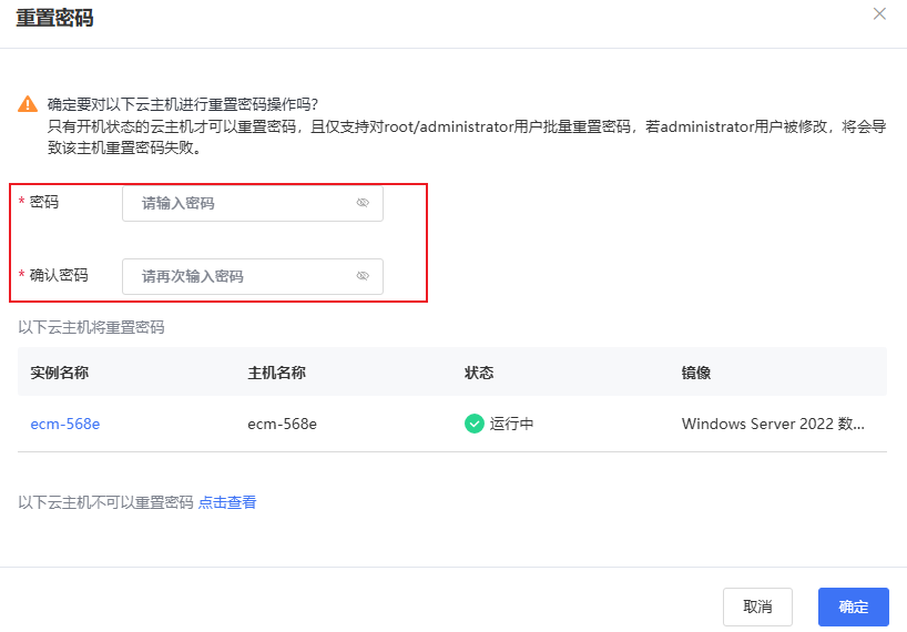 本节操作介绍Linux操作系统云主机在控制台修改密码。