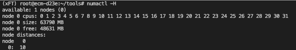 numactl -H以下输出代表32个vcpu均在同一个numa node下: