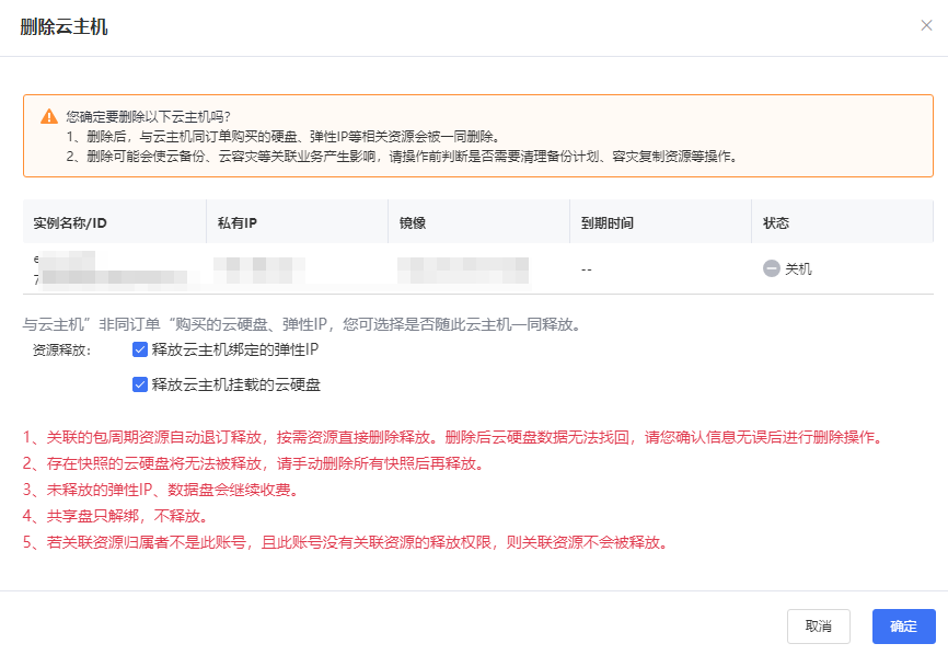 为了确保您的数据安全,请在删除云主机之前按照确认以下操作: