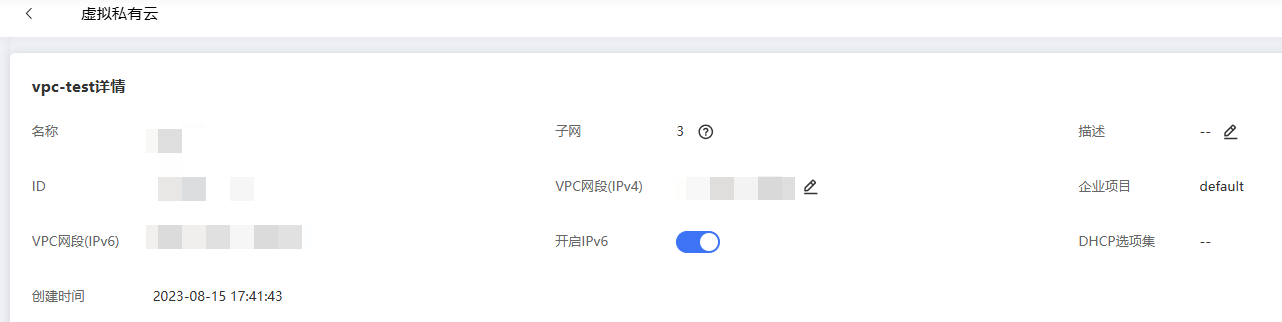 若详情信息中“子网网段(IPv6)”字段展示了IPv6网段信息,则说明子网已开启IPv6。