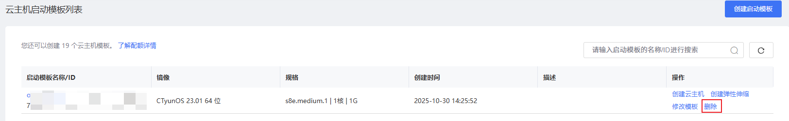 找到想要使用的云主机启动模板,点击操作中“删除”。
