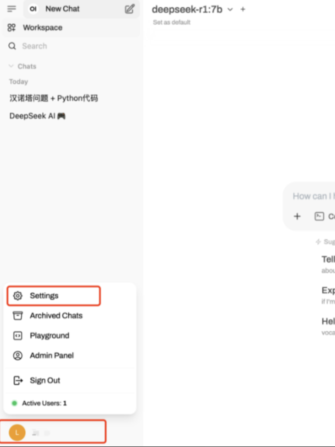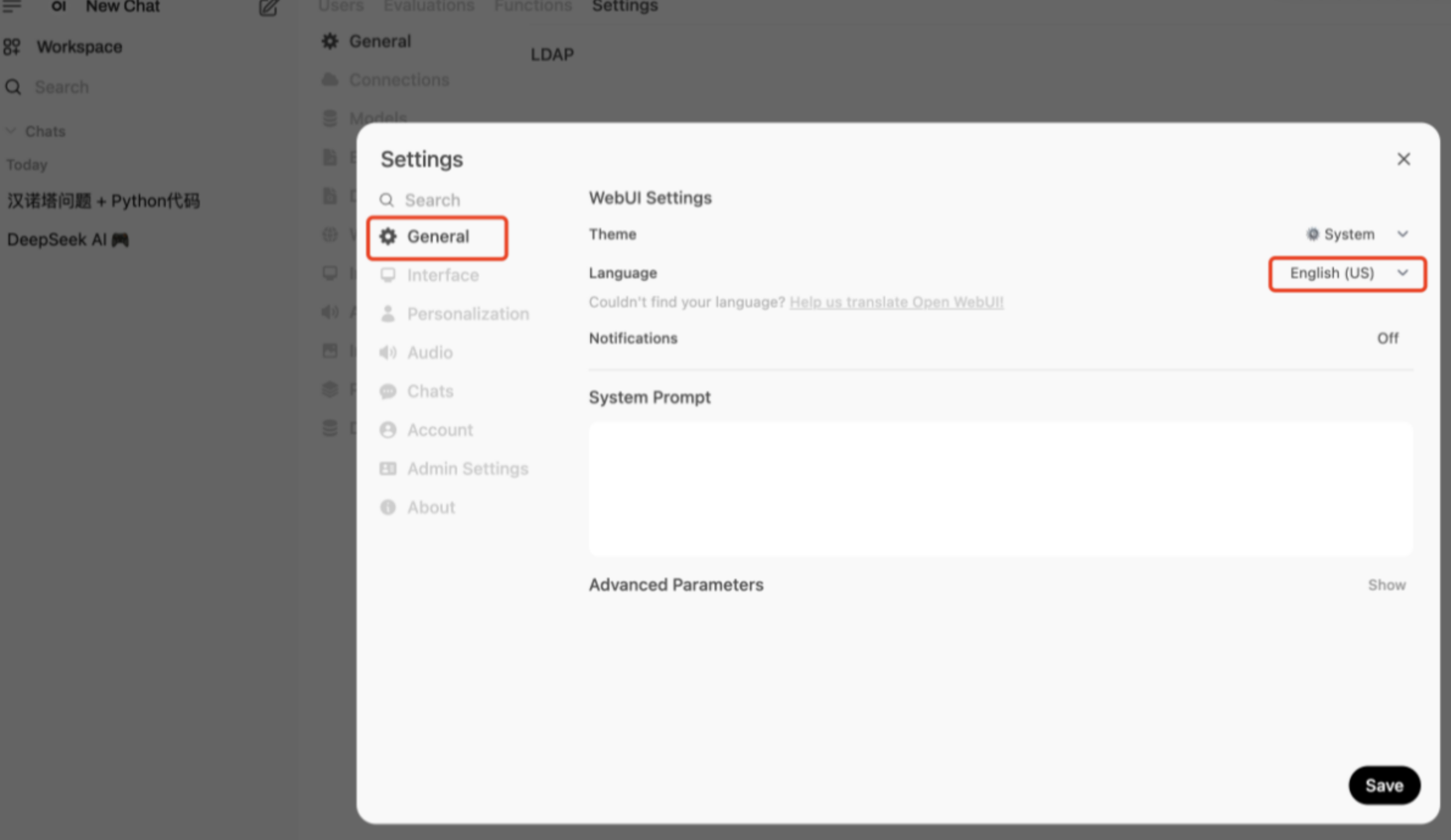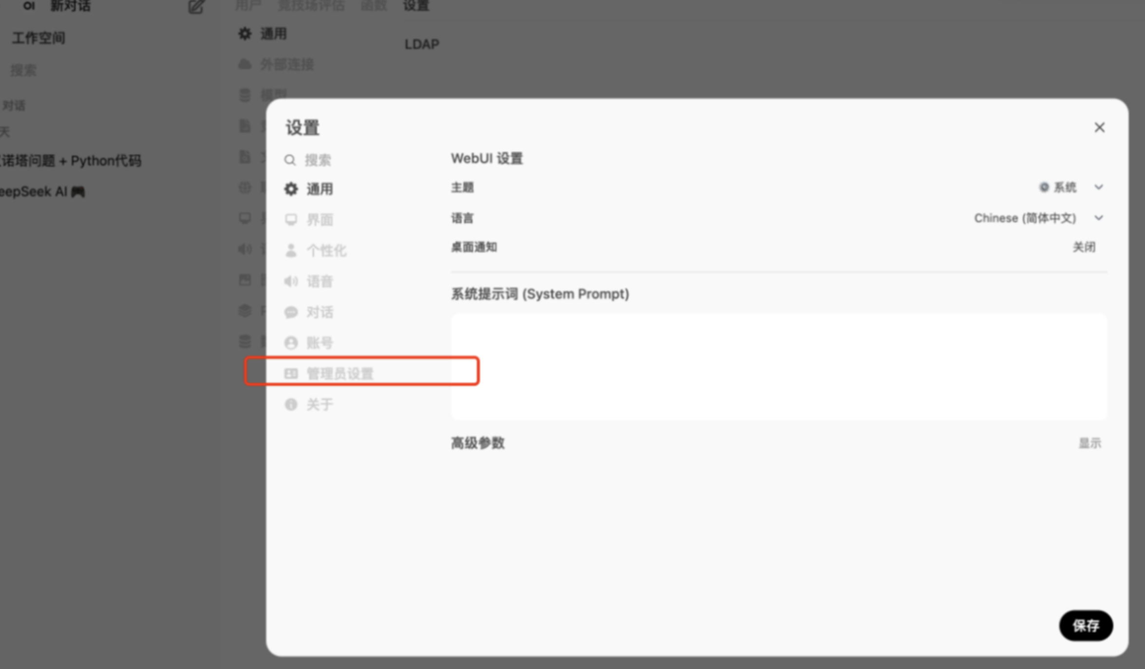 Open WebUI有强大的设置功能,可根据需要进行设置,点击左下角进入设置页面。