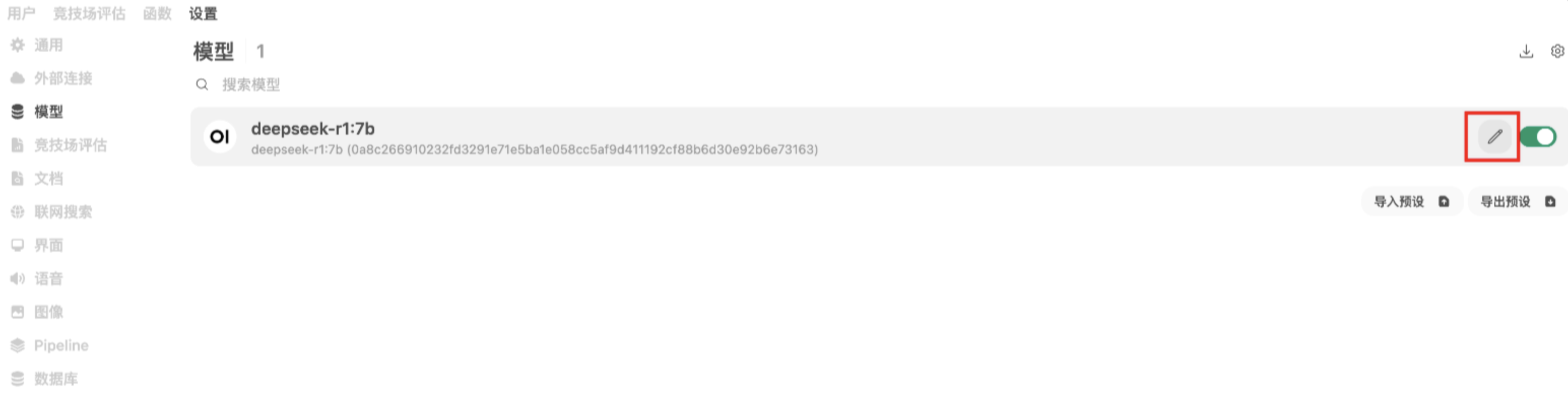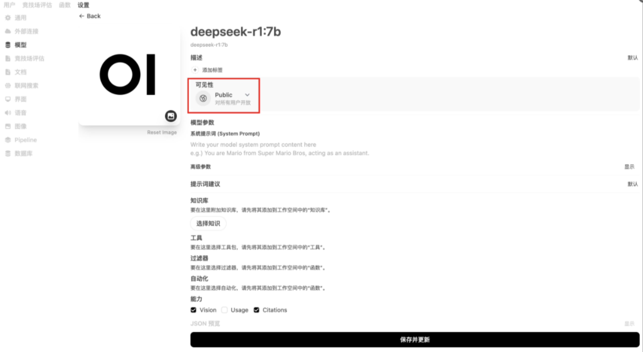 多用户模式下,建议把模型设置为public,如此才能让模型被所有用户看到。进入“管理员面板” -> “设置” -> “模型”,并点击编辑。