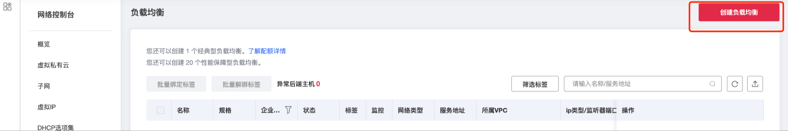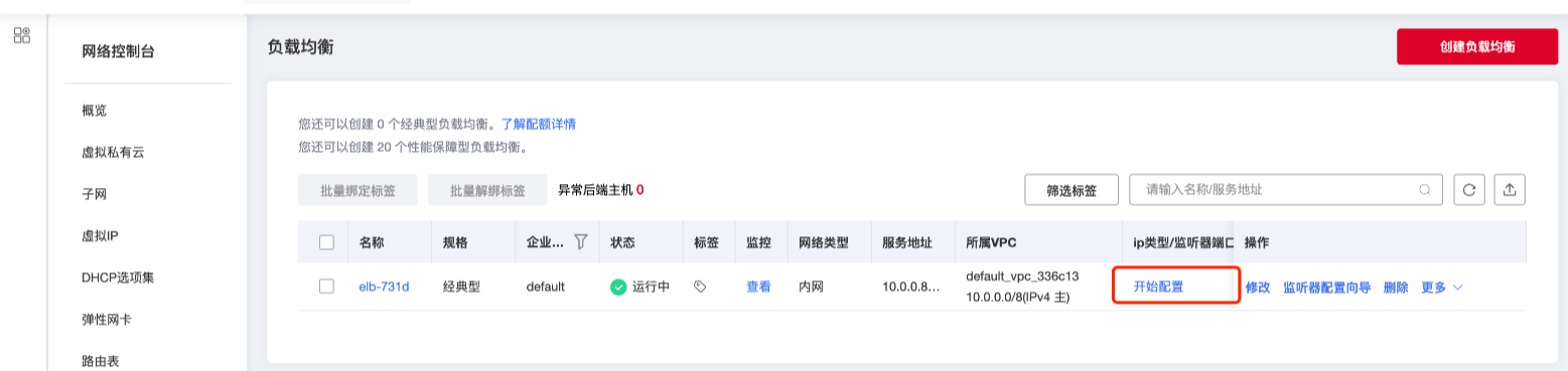 完成网络负载均衡创建,接下来配置监听器,在负载均衡列表页,点击开始配置。