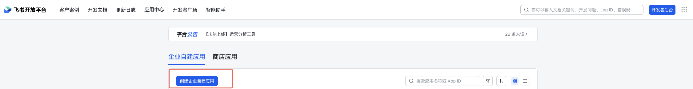 进入飞书应用中心 ,选择创建企业自建应用。