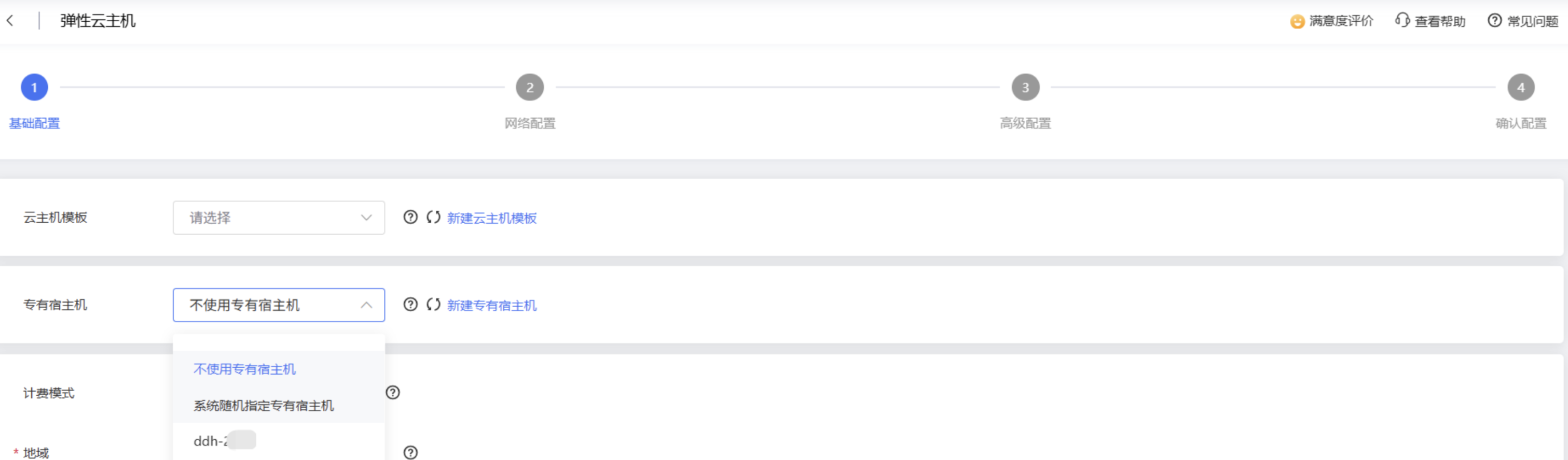 云主机相关配置项可查看创建弹性云主机,在专有宿主机上的云主机仅支持按量付费的计费模式。