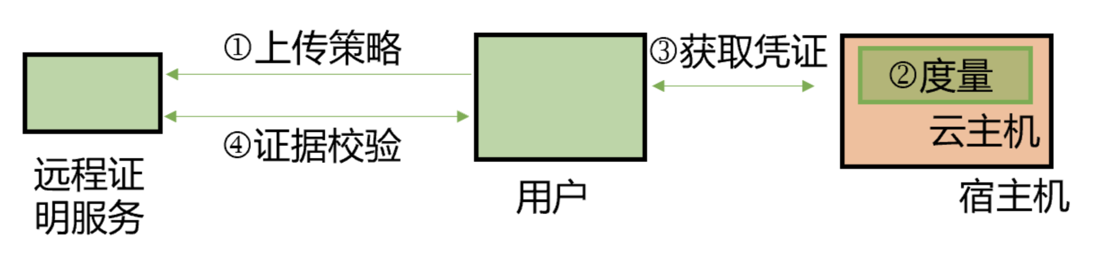 基于硬件信任根建立从硬件到软件的可信启动链,并利用该信任根对系统状态生成密码学签名的报告。远端验证者通过验证该报告的完整性和真实性,并与预定义的可信策略进行比对,来达成两个核心目标: