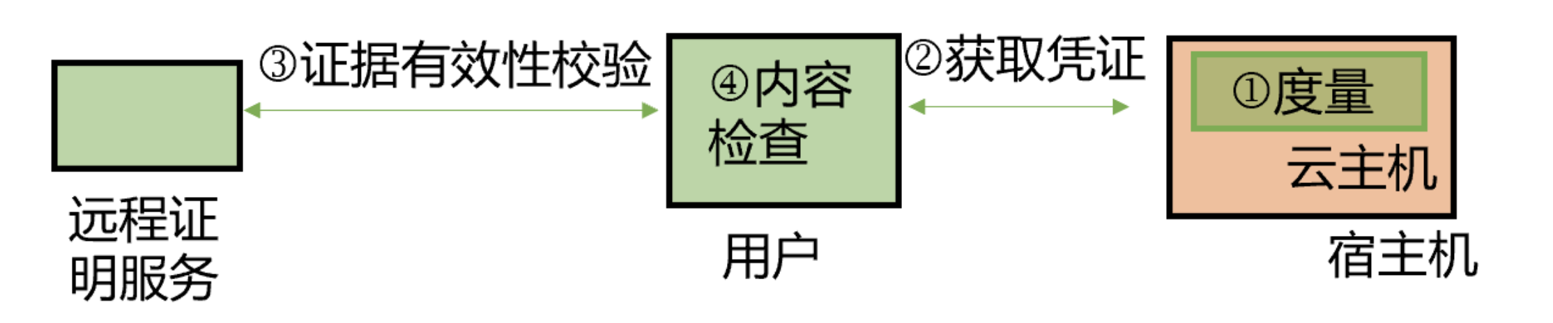在可信/机密云主机启动过程中,(虚拟)硬件会度量所涉及的软件并保存度量值;