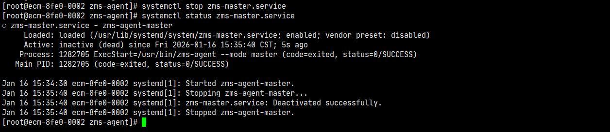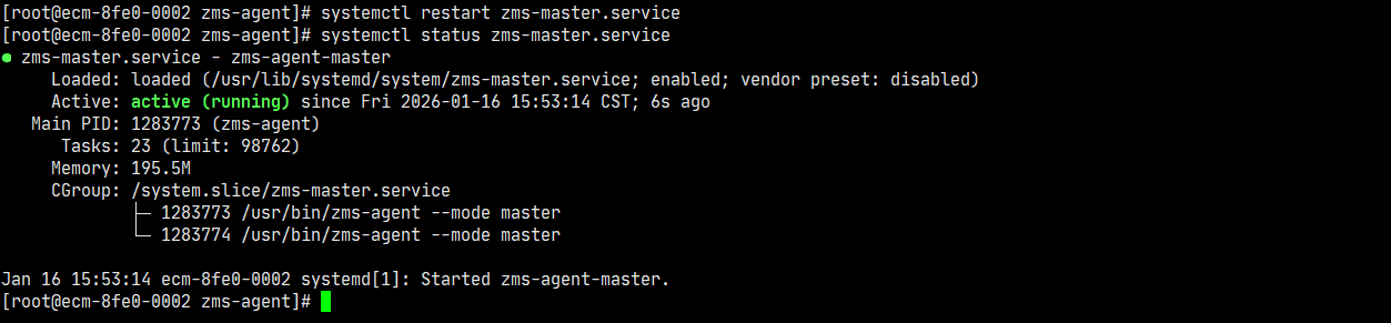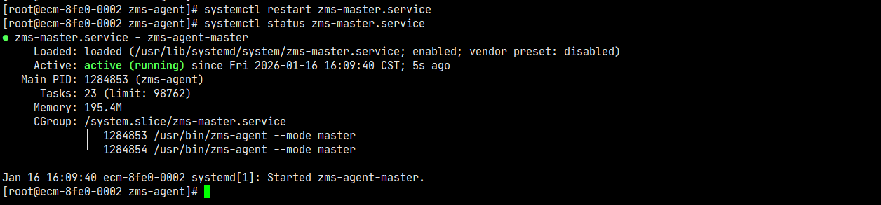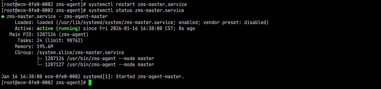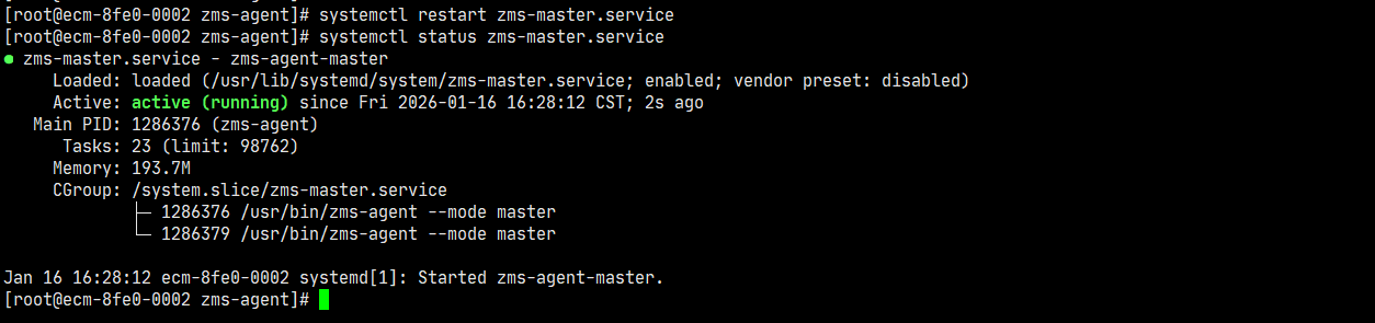 systemctl restart zms-master systemctl status zms-master