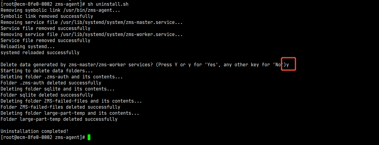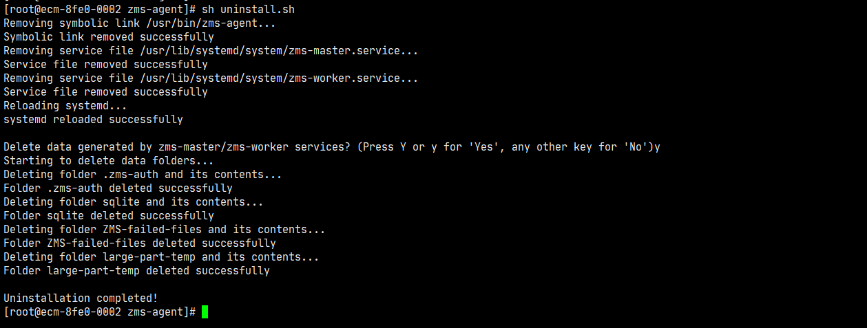 卸载:在部署zms-master或zms-worker的机器上执行uninstall.sh脚本即可。