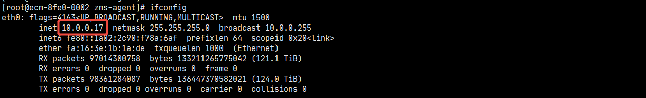 获取部署机器内网地址,用于zms-master与zms-worker通信。