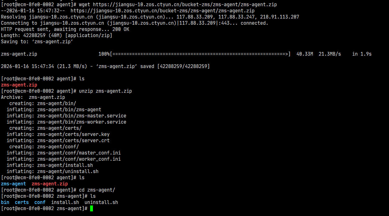 wget https://jiangsu-10.zos.ctyun.cn/bucket-zms/zms-agent/zms-agent-V1.0.0.zip
