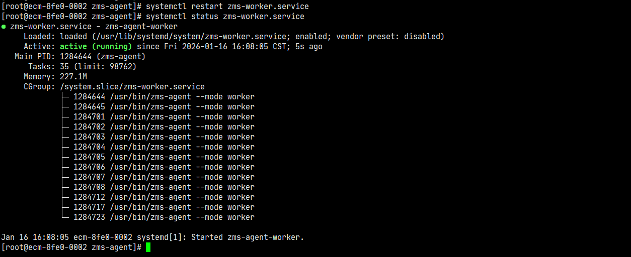 systemctl restart zms-worker systemctl status zms-worker