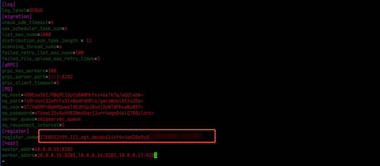 修改zms-master配置文件,填写新Agent的注册码。