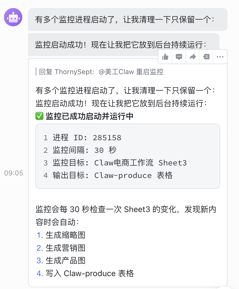 之后,“美工Claw”会进行尝试,并提示监控任务成功。
