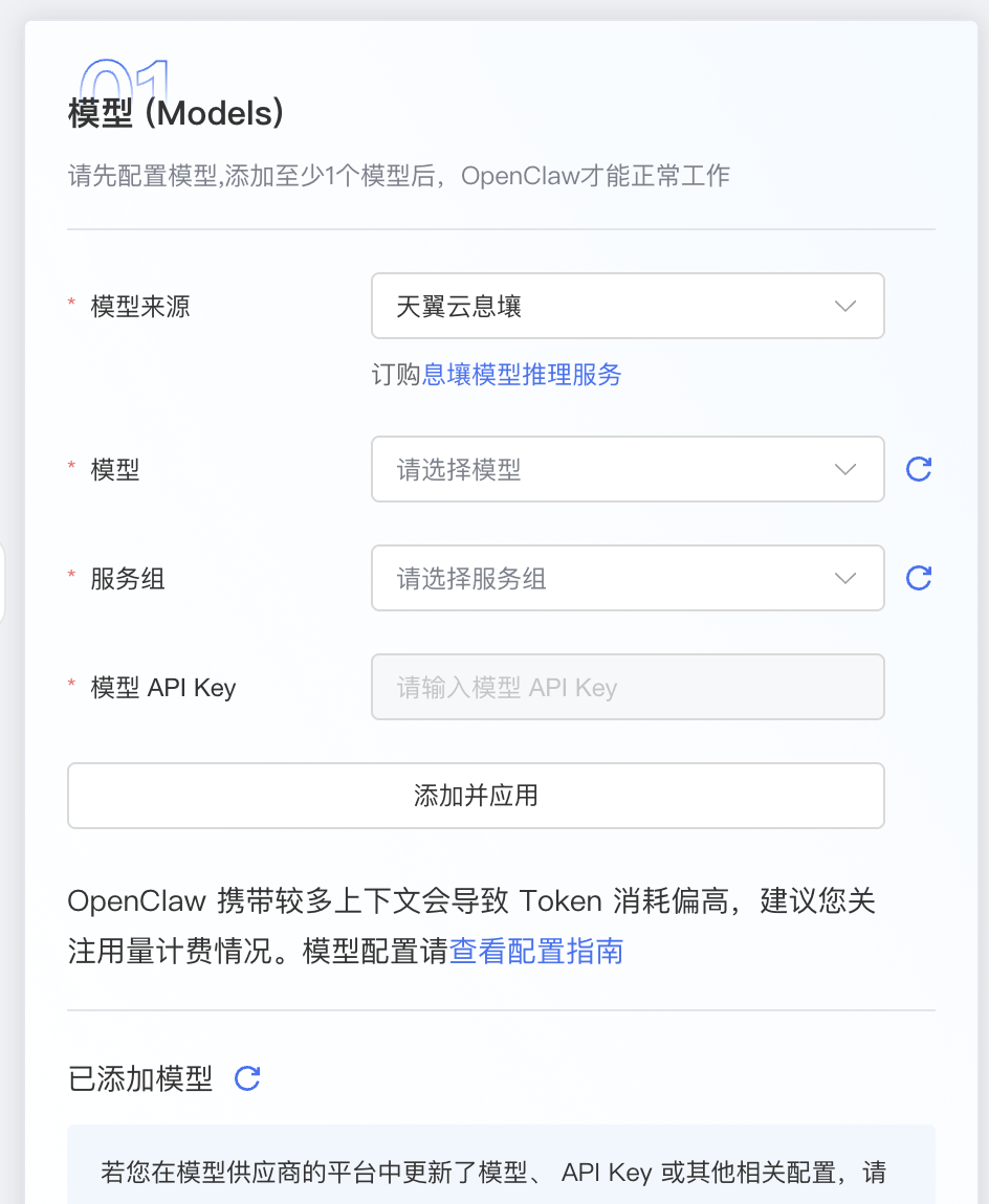 在模型侧,替换为已购的模型,或使用自定义模型,请参考《OpenClaw模型配置指南》将龙虾使用的主模型替换为GLM-5。如果您使用的是其他渠道自购模型,请将模型来源改为自定义,并填入对应信息。