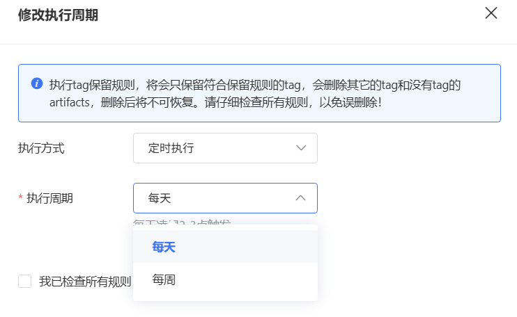 若选择手动执行规则,版本保留任务只能由手动触发。