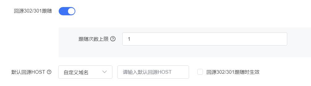 3.登录CDN加速控制台,CDN加速配置回源302/301跟随,参考CDN加速配置指引。其中“回源HOST”填写容器镜像服务公网域名。