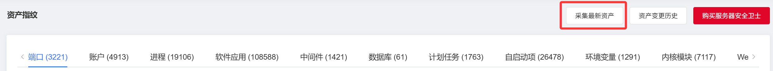 手动采集:点击“采集最新资产”按钮后立即采集最新资产指纹数据。
