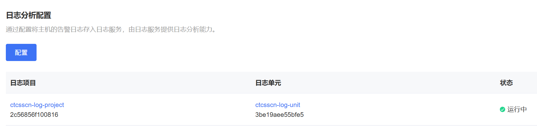 - 在左侧导航栏,选择“设置中心 > 安全配置”,选择“其他配置”页签,选择日志分析配置模块。